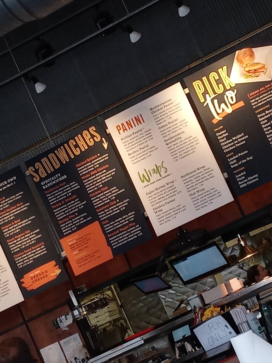 Turkey, ham, pimento cheese, bacon, lettuce, tomato, mayo, and honey mustard on sourdough.